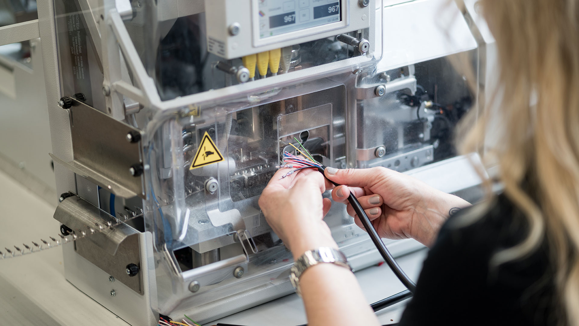 Rund 150 hochqualifizierte Mitarbeiter arbeiten bei Alexander Bürkle cable solutions mit einem modernen Maschinenpark für Crimp-Technik, IDC-Technik, FFC-Kabel, Hot-Melt und Kennzeichnungssystemen. Durch unser umfangreiches Sortiment von über 1.000 Werkzeugen können wir eine Vielfalt unterschiedlicher Crimp-Kontakte verarbeiten und so eine äußerst flexible Produktion bieten.